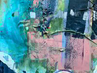 Original one of a kind hand created mixed media artwork on 48x 60x 1.5" gallery wrapped canvas. Thick textures give this artwork an almost wall sculpture feel while deep blues and colorful highlights finish off this unique statement piece. Finished with a final layer of protective varnish and all sides are painted satin black so a frame is not necessary.