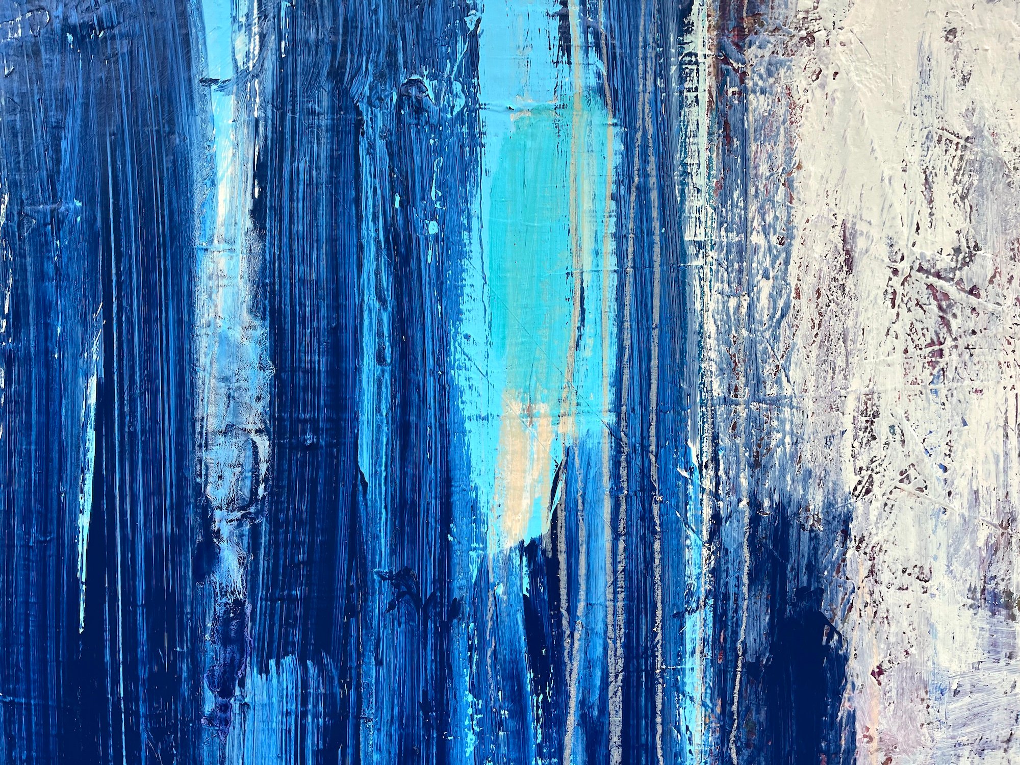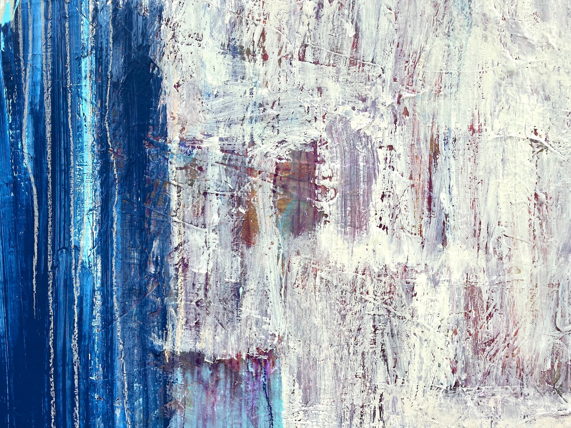 Original one of a kind hand painted mixed media artwork on 60x 48x 1.5" gallery wrapped canvas. Thick textured acrylics and oil pastel highlights make up this large piece. Finished with a final layer of protective varnish and all sides are painted satin black so a frame is not necessary.